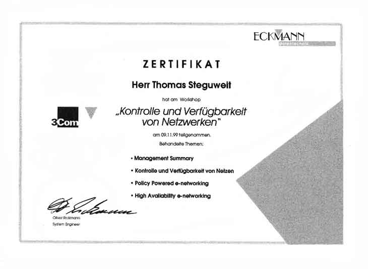 3Com Workshop Zertifikat